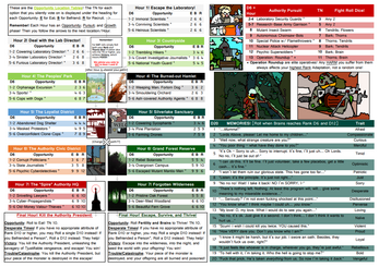 Each player controls their own part of the same creature; a section of rapidly evolving tissue and the cluster of neurons that controls it. But you are all one plant-monster. Spliced, enhanced and highly adaptable. You are ravenous. You must EAT; and what you eat, you absorb: hybridising; growing. But how will you grow? Whose influence will prevail? The Goal: Grow! Gain FOOD and avoid HARM. And decide: What, or who, will you eat? Pursued by THE AUTHORITY, will you seek vengeance in the Final Hour? Will you escape? Will you survive?